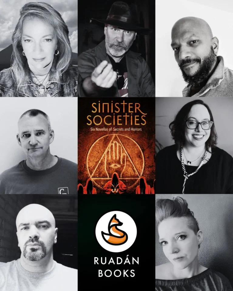 Boston, MA – July 28, 2025 – Ruadán Books announces the table of contents, publication date, and pre-order availability for their fourth original anthology: Sinister Societies: Six Novellas of Secrets…